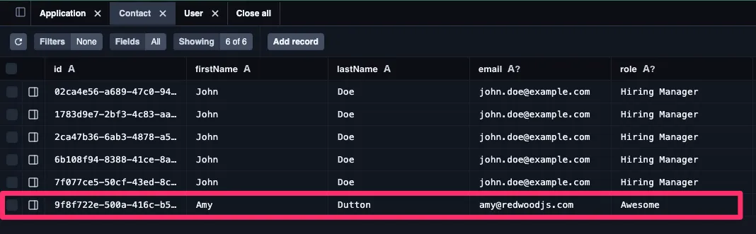 You can also check Prisma Studio (npx prisma studio) to see the new contact in the database:
