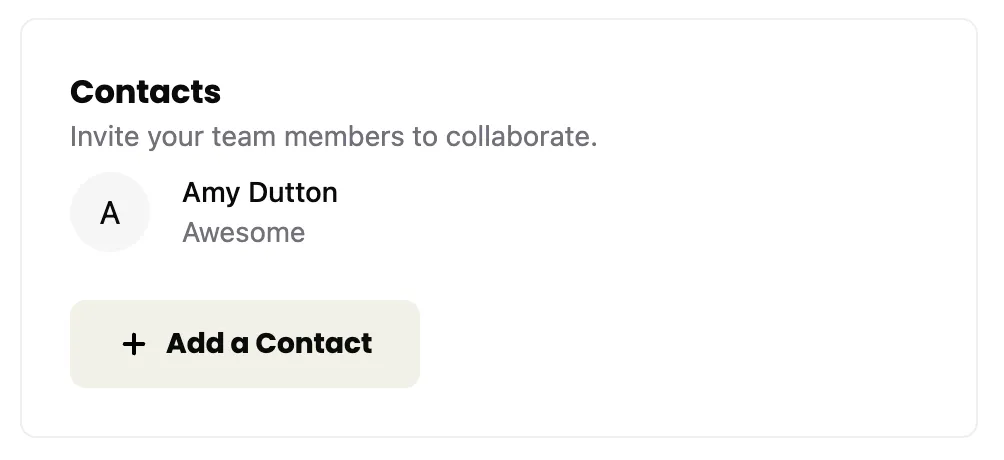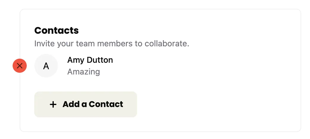 Sheetcomponent stays open and you can keep adding as many contacts as you’d like. - When you’ve finished adding contacts, you can close the