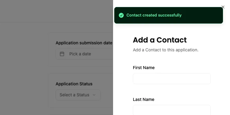 Now, when we add a job application, we need to associate the contact with the company. We’ll need to adjust our createApplication function within the src/app/pages/applications/functions.ts file slightly.