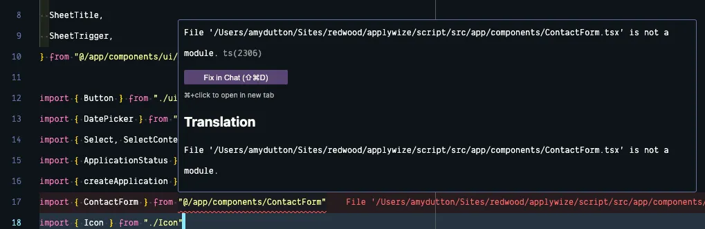 import { ContactForm } from "./ContactForm";Inside our ContactForm.tsx file, let’s start with a basic component (you should also see your linting error go away):