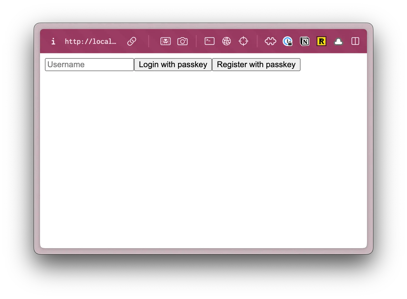 <input type="text" value={username} onChange={(e) => setUsername(e.target.value)} placeholder="Username" /> <button onClick={handlePerformPasskeyLogin} disabled={isPending}> {isPending ? <>...</> : "Login with passkey"} </button> <button onClick={handlePerformPasskeyRegister} disabled={isPending}> {isPending ? <>...</> : "Register with passkey"} </button> {result && <div>{result}</div>} </>);
