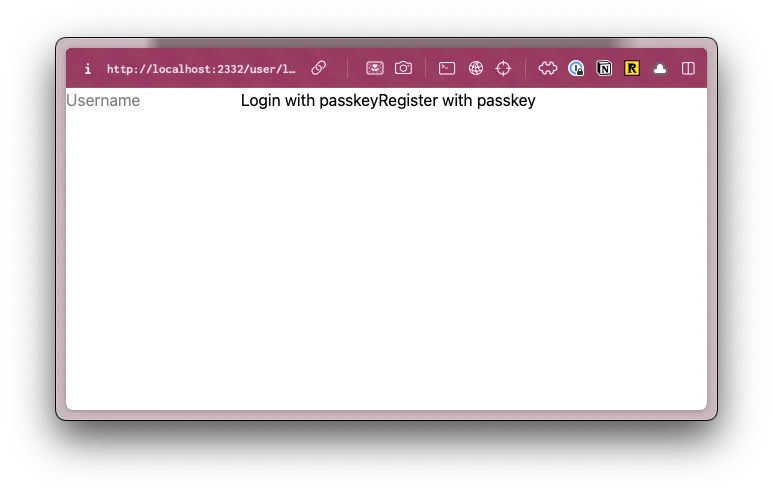 <input type="text" value={username} onChange={(e) => setUsername(e.target.value)} placeholder="Username" /> <button onClick={handlePerformPasskeyLogin} disabled={isPending}> {isPending ? <>...</> : "Login with passkey"} </button> <button onClick={handlePerformPasskeyRegister} disabled={isPending}> {isPending ? <>...</> : "Register with passkey"} </button> {result && <div>{result}</div>} </>);