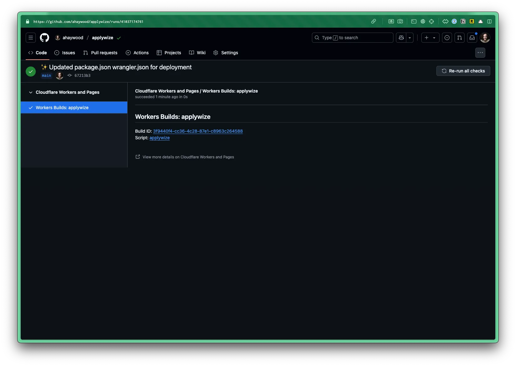 You can connect your application to GitHub, so that anytime you push a commit to a given branch, it will automatically deploy your application. Go to Workers & Pages in the left side navigation. Then, click on the name of your project. Click on the Settings tab. Near the bottom of the page, you’ll find a section called Build where you can connect GitHub.
