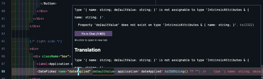 Excellent! Now, let’s go back to our EditApplicationForm.tsx file and update the Application Status. Just like our standard inputs, we can pass in a defaultValue prop: