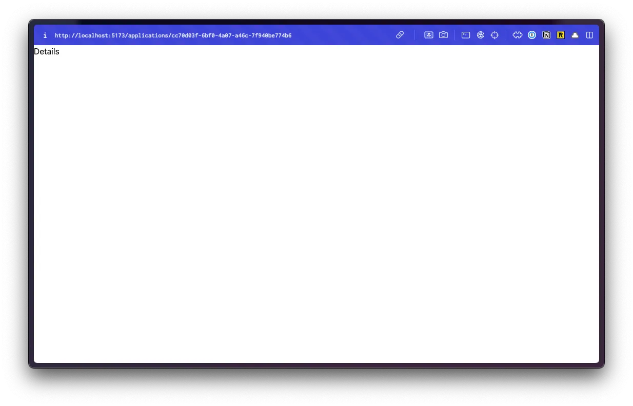 The URL for your page should look something like this: http://localhost:5173/applications/cc70d03f-6bf0-4a07-a46c-7f940be774b6