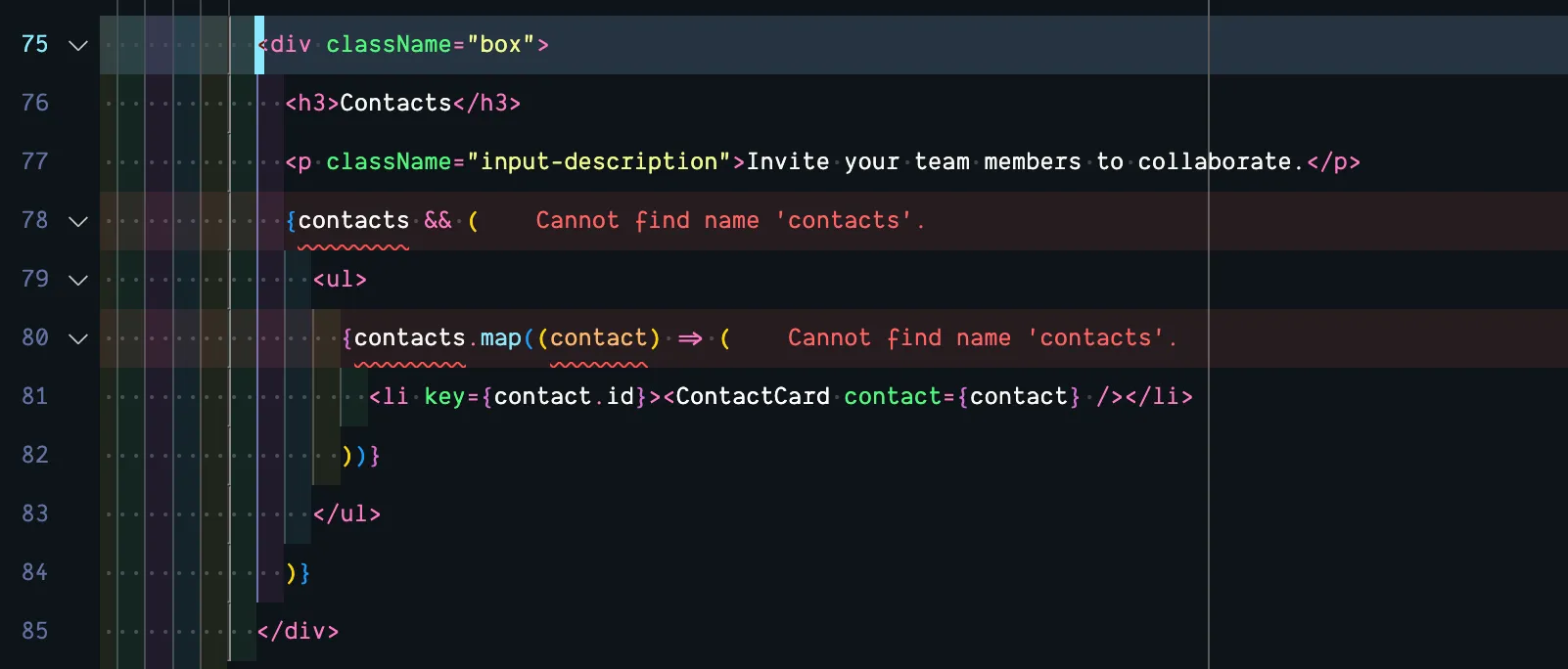 For the Contacts section, we just need to adjust the contact array its referencing: