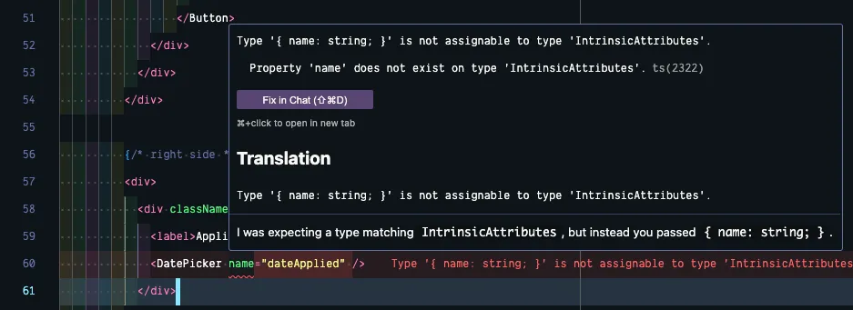 import { DatePicker } from "./ui/datepicker";Now, you may have noticed that we have a linting error on our DatePicker component.