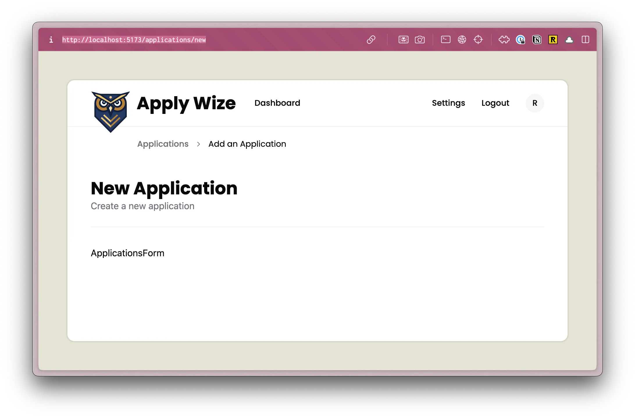 Before we start building out our Application Form, let’s add it to the New.tsx file.